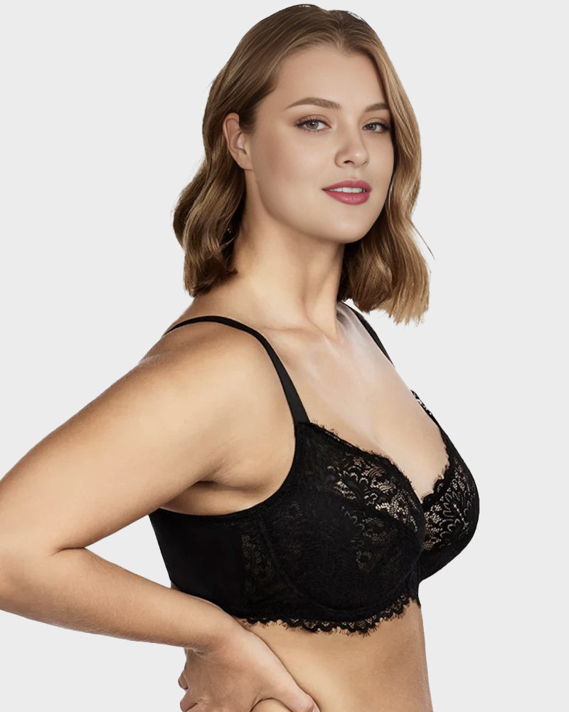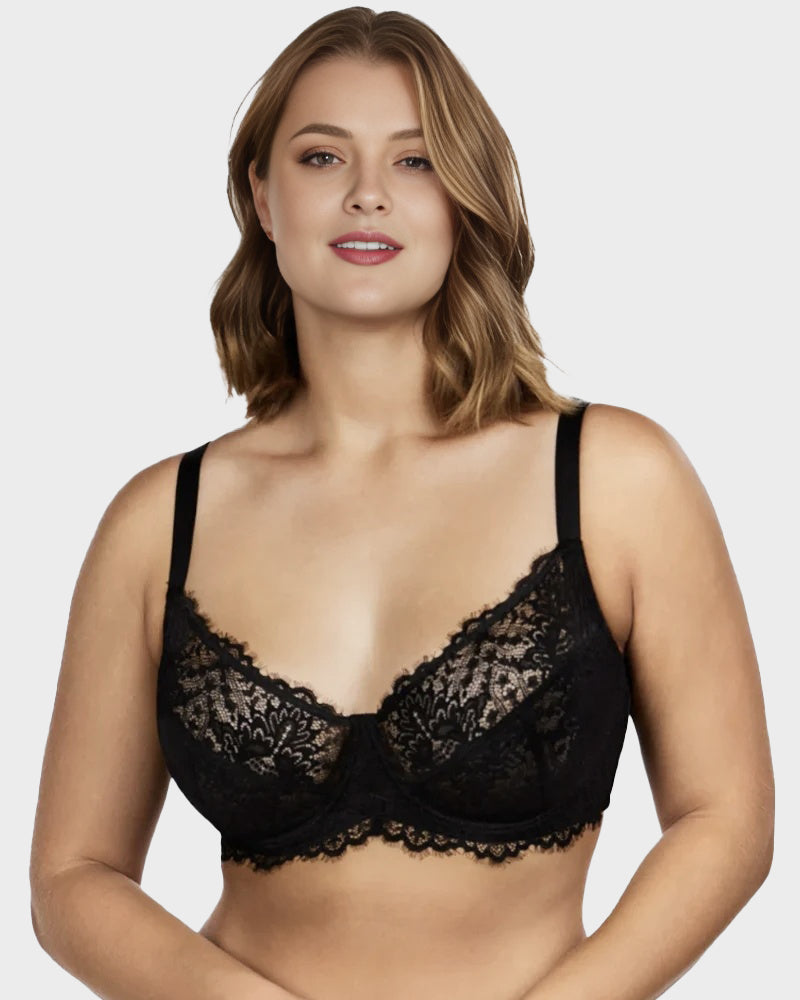 Leaf Pattern Lace Full Coverage Unlined Push Up Bra