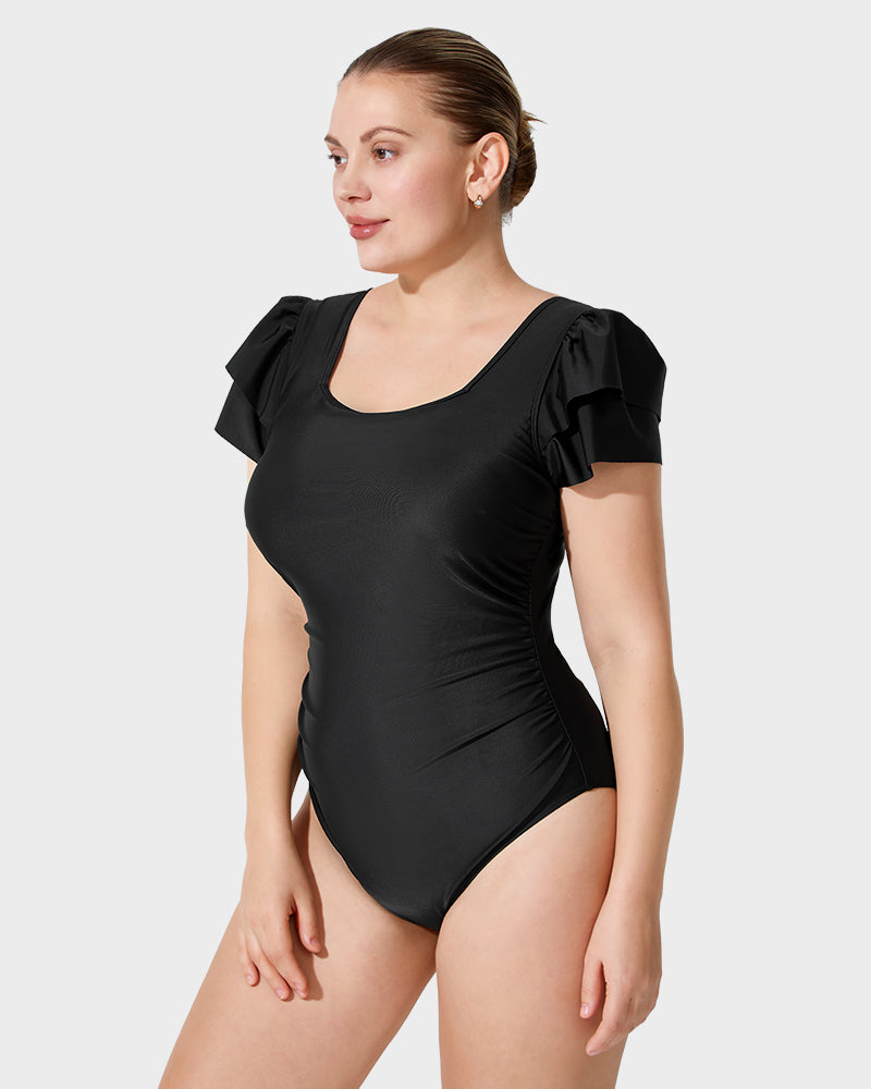 Square Neck Ruffle Sleeve One-Piece Swimsuit