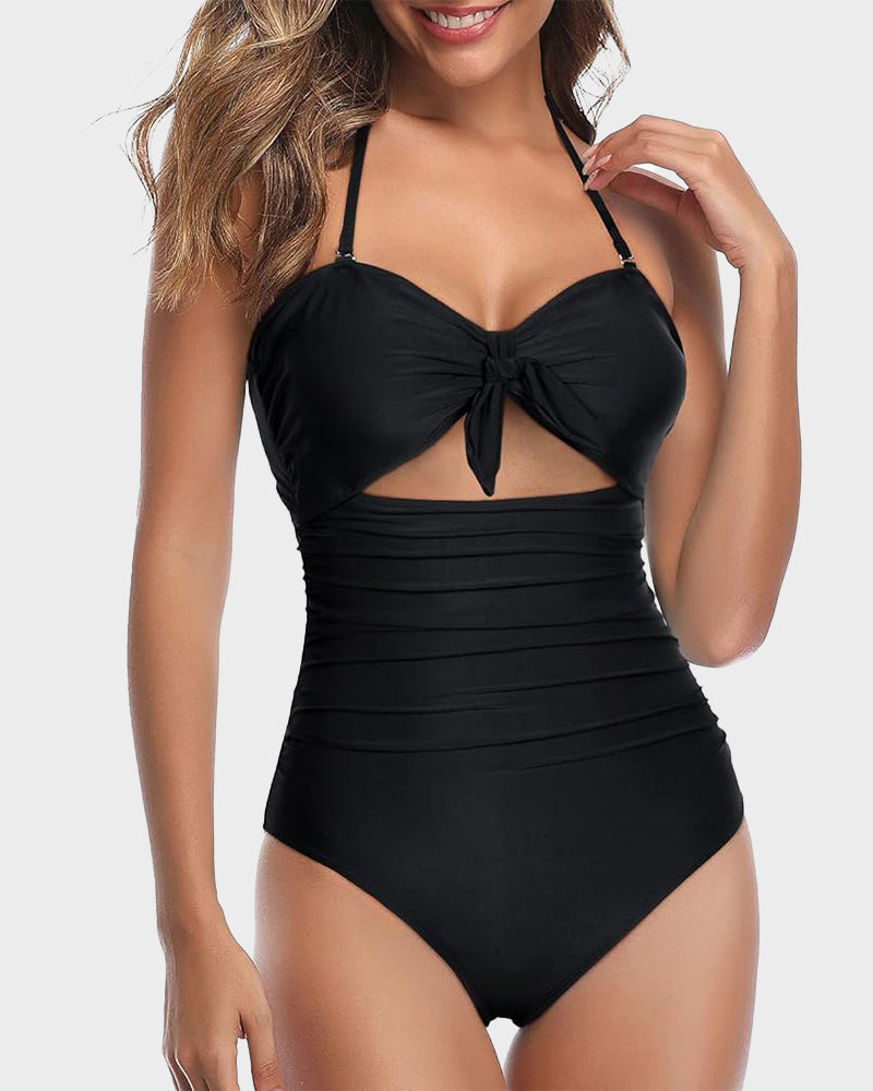 Halter Neck Ruched Tummy Control Cutout Swimsuit