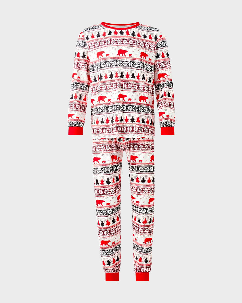 Adorned with cheerful holiday-themed patterns, this pajama set captures the spirit of Christmas, making it ideal for family gatherings and cozy nights in. -