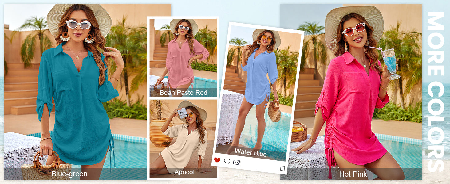 Coverup Drawstring Beach Dress Shirt