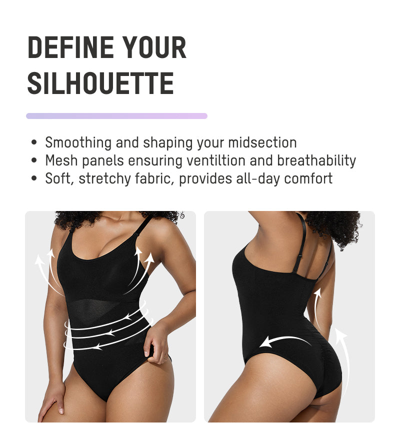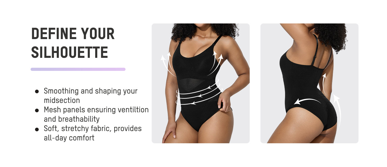 Criss-Cross Mesh Panel Sculpting Bodysuit