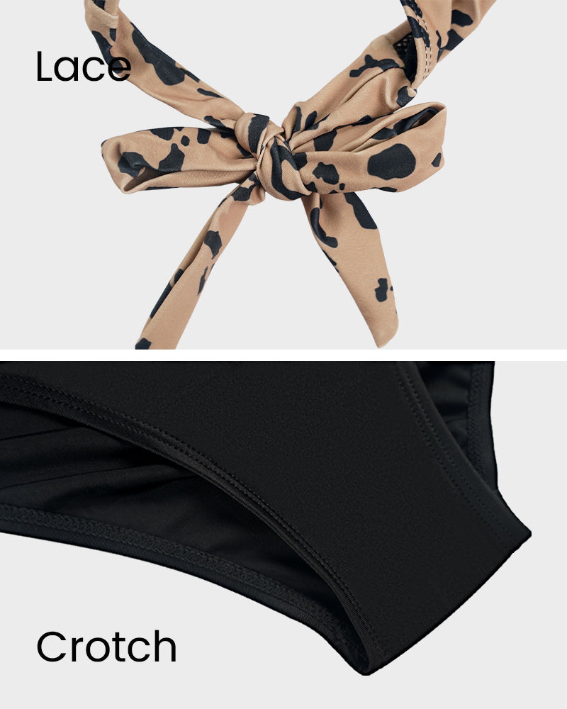 The halter neck style offers adjustable ties, ensuring a secure and comfortable fit that highlights your shoulders and back.Chic Leopard Print