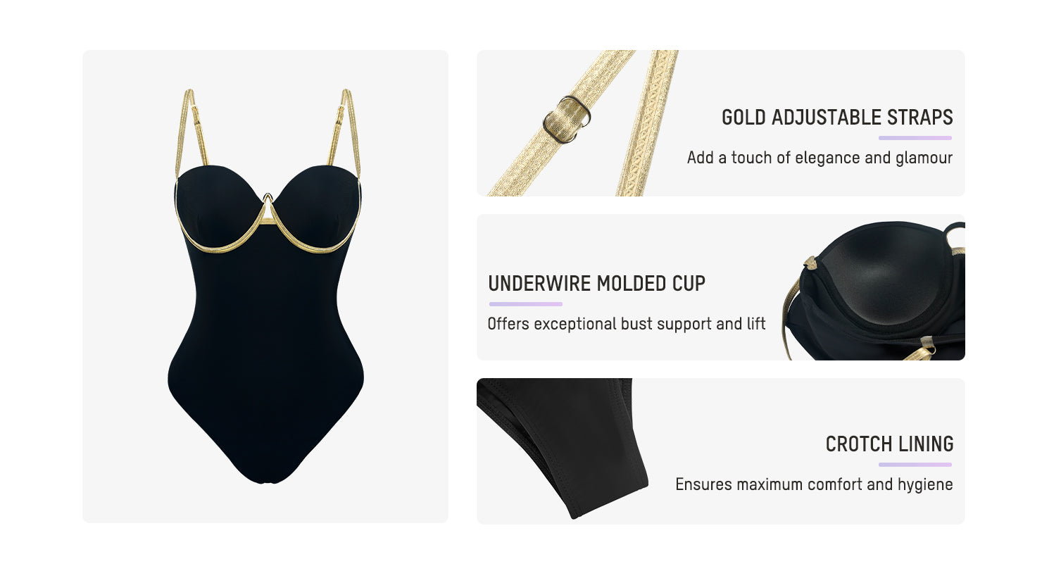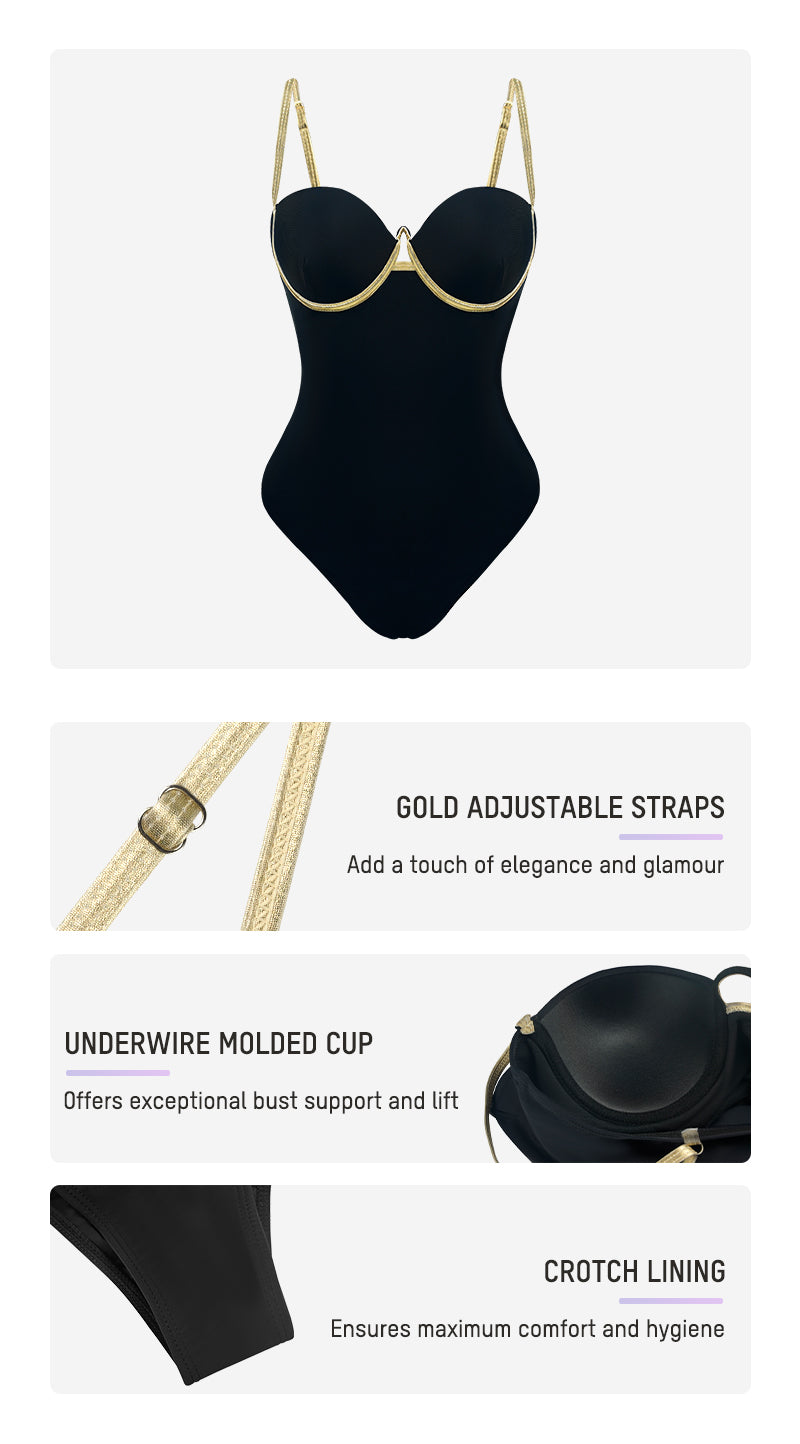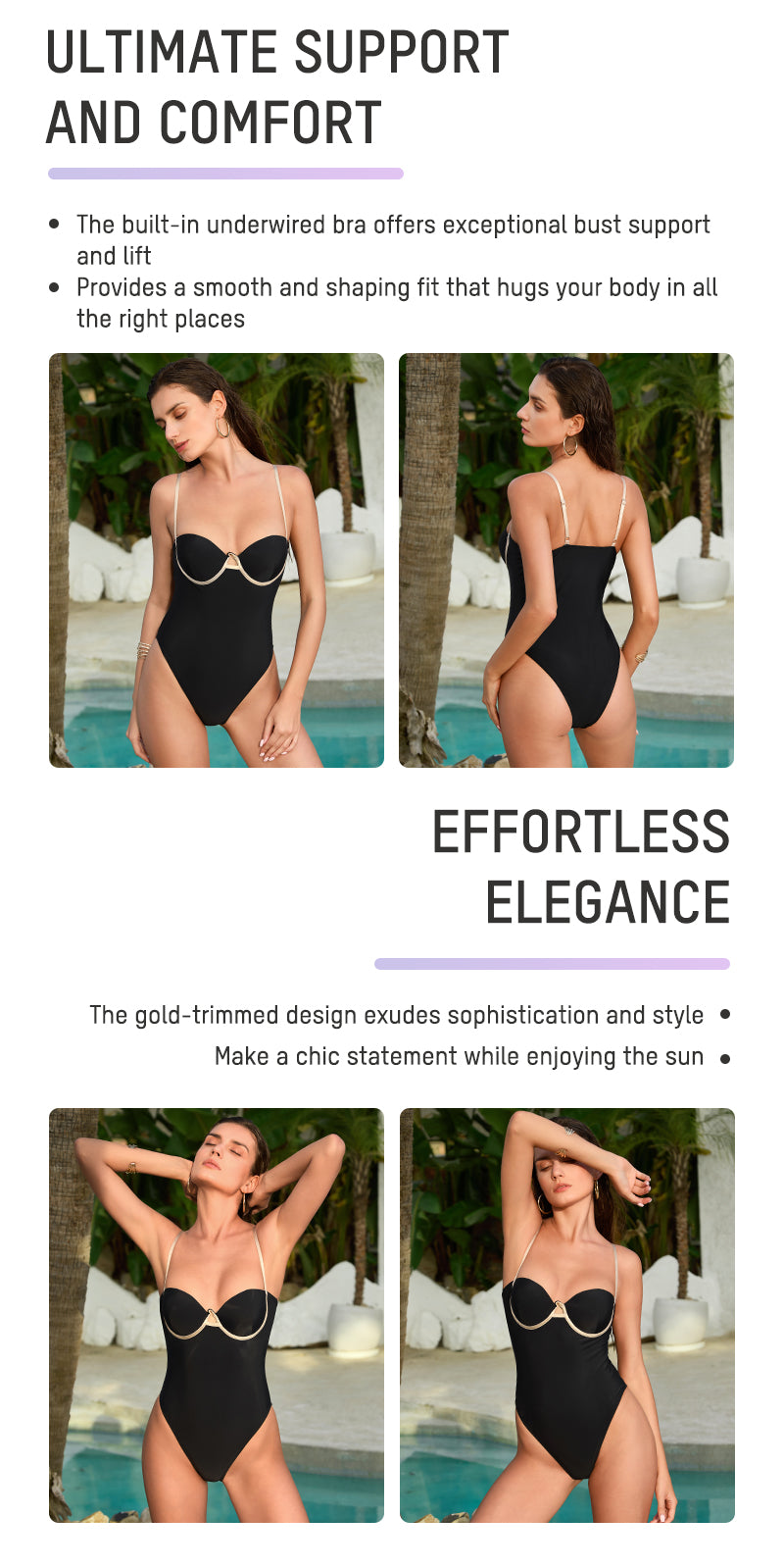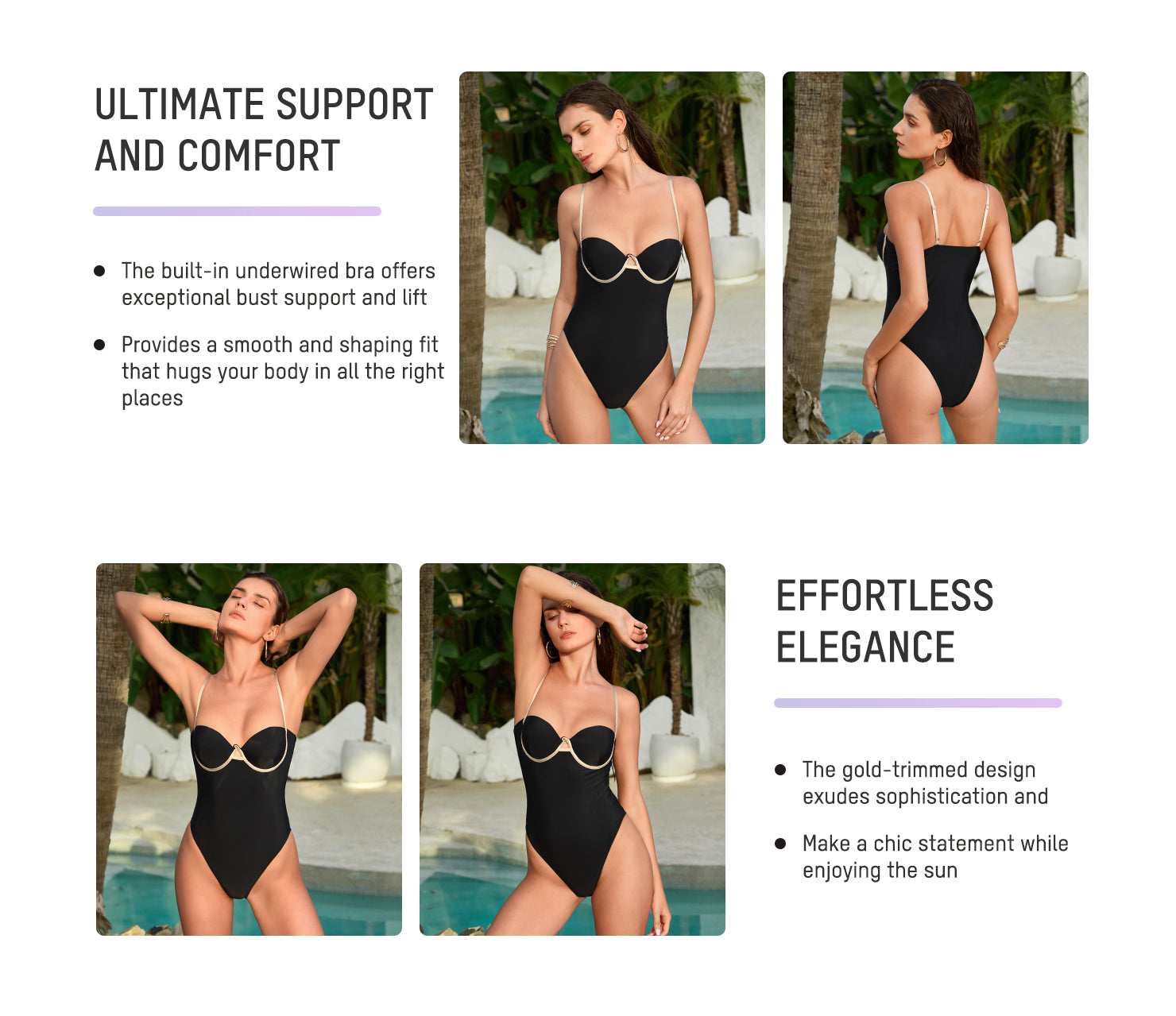 Gold-Trimmed Underwire Molded Cup One-Piece Swimsuit