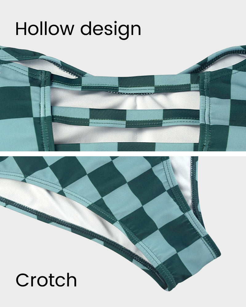 The short sleeves and one-piece style provide ample coverage while maintaining a trendy look, making it ideal for family outings and pool days.Charming Check Pattern