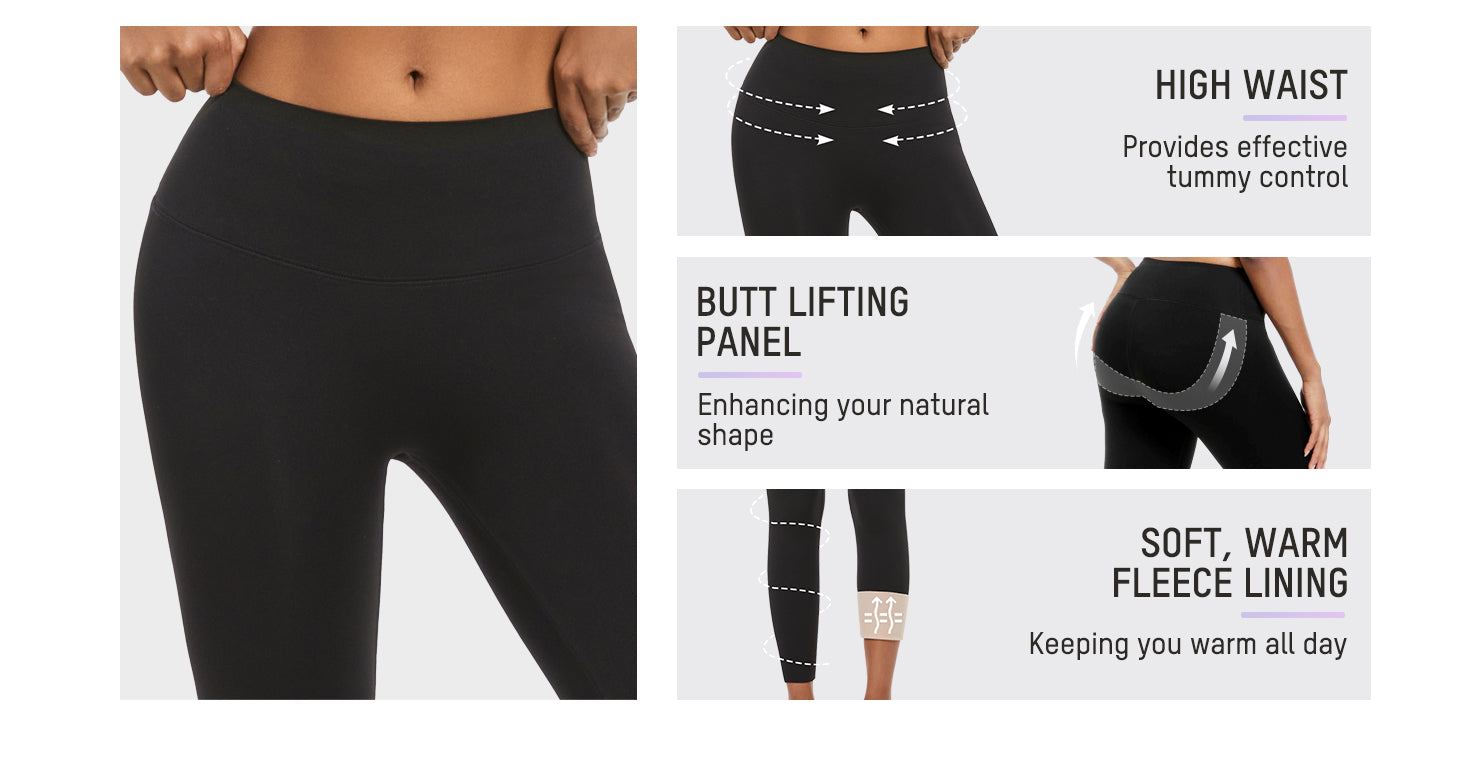 High Waist Butt Lifting Lightweight Fleece Lined Leggings