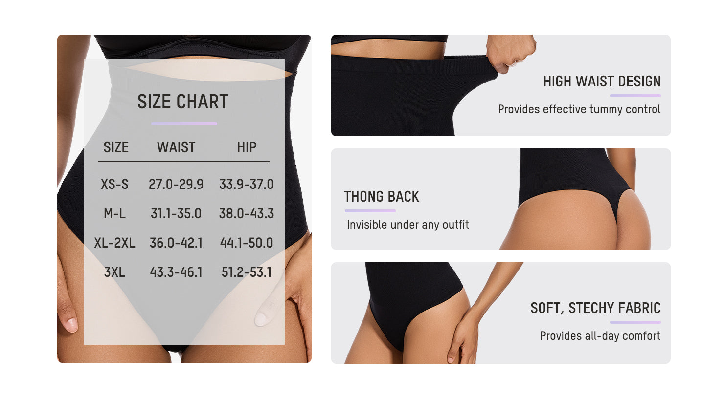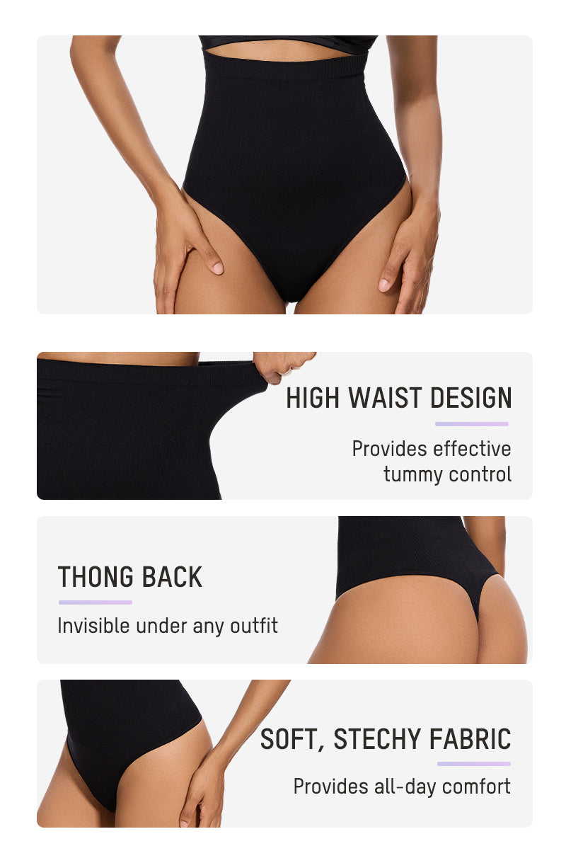 High Waist Tummy Control Thong Panty (2 Pack)