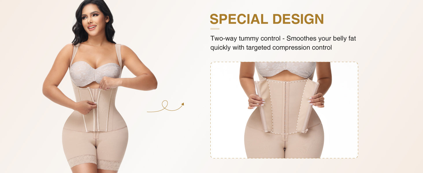 LATEST TUMMY CONTROL FAJA SHAPEWEAR: This fajas bids farewell to the traditional design concept of the past. We use an inner buckle and an outer zipper closure design in the abdominal area of the new faja body shaper. The outer zipper area can be opened independently, forming three layers of high-compression fabric in the abdominal area for targeted control. It can quickly smooth belly fat and create charming body curves.