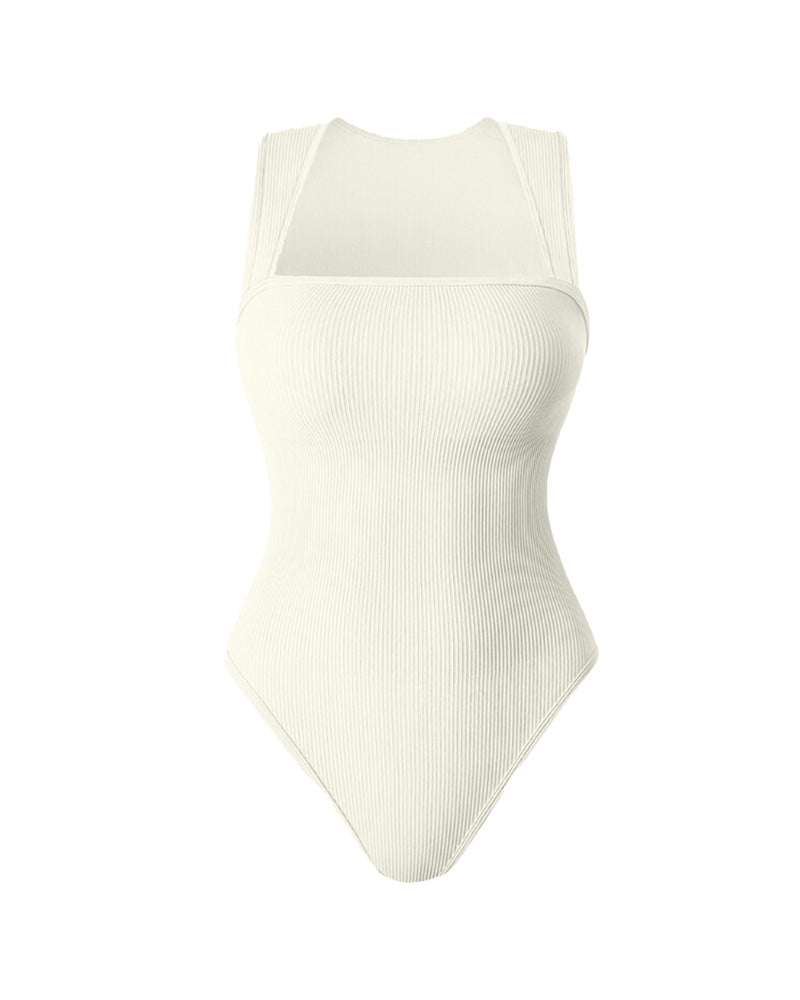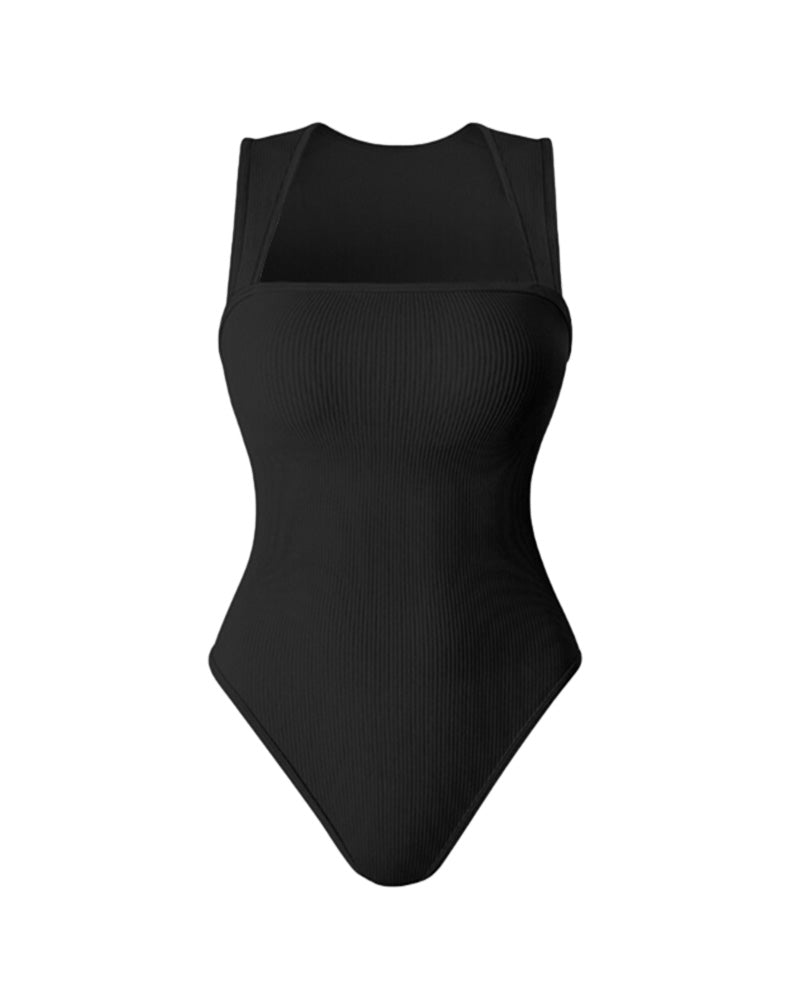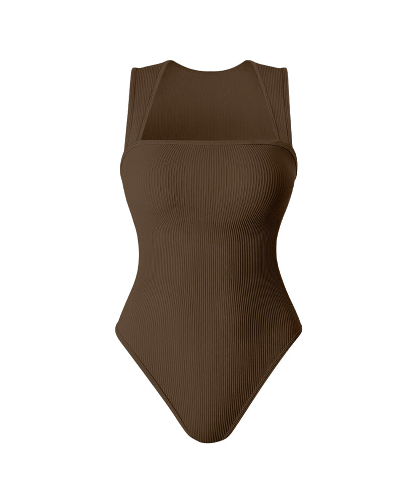 Ribbed Strappy Square Neck Shaping Bodysuits