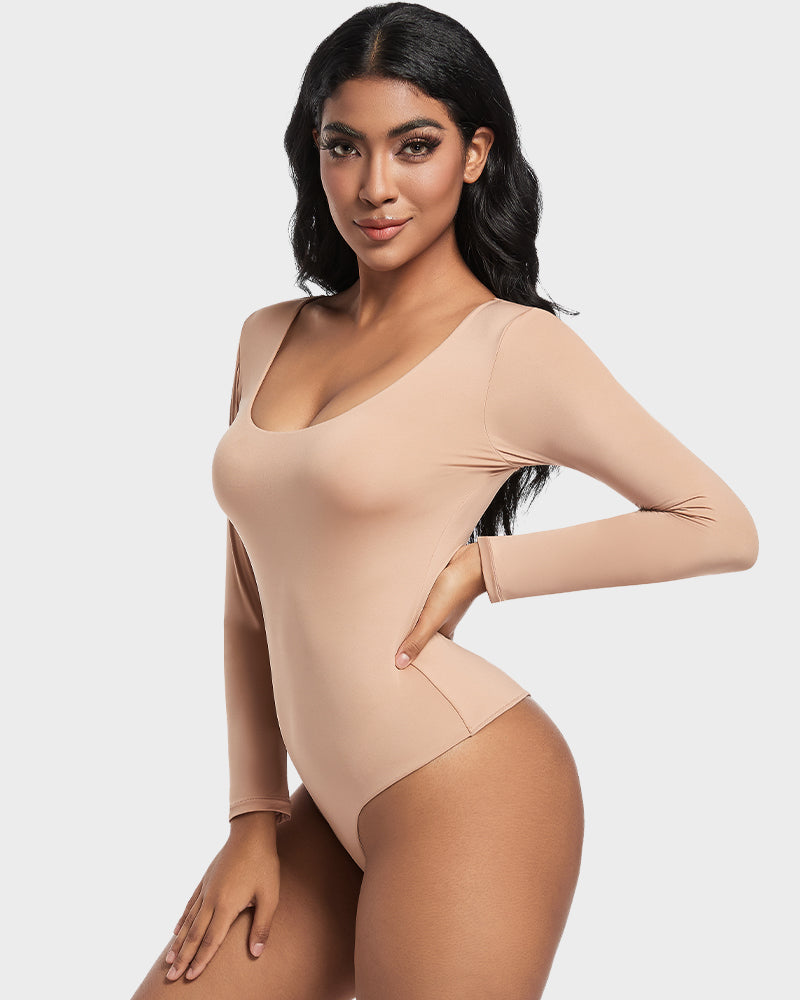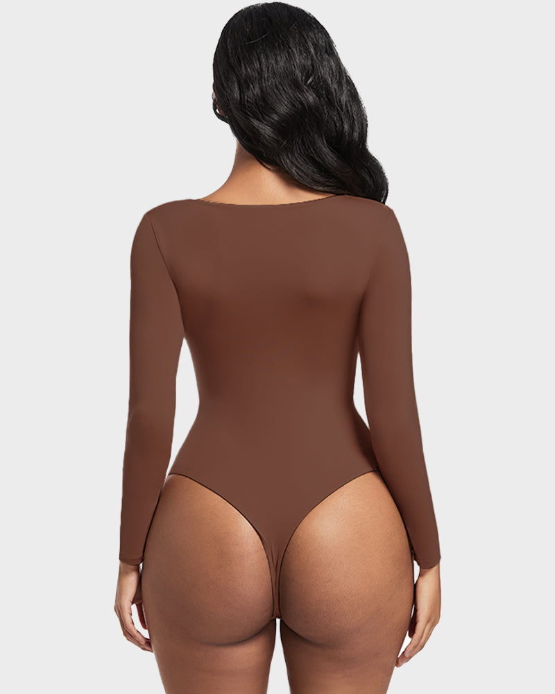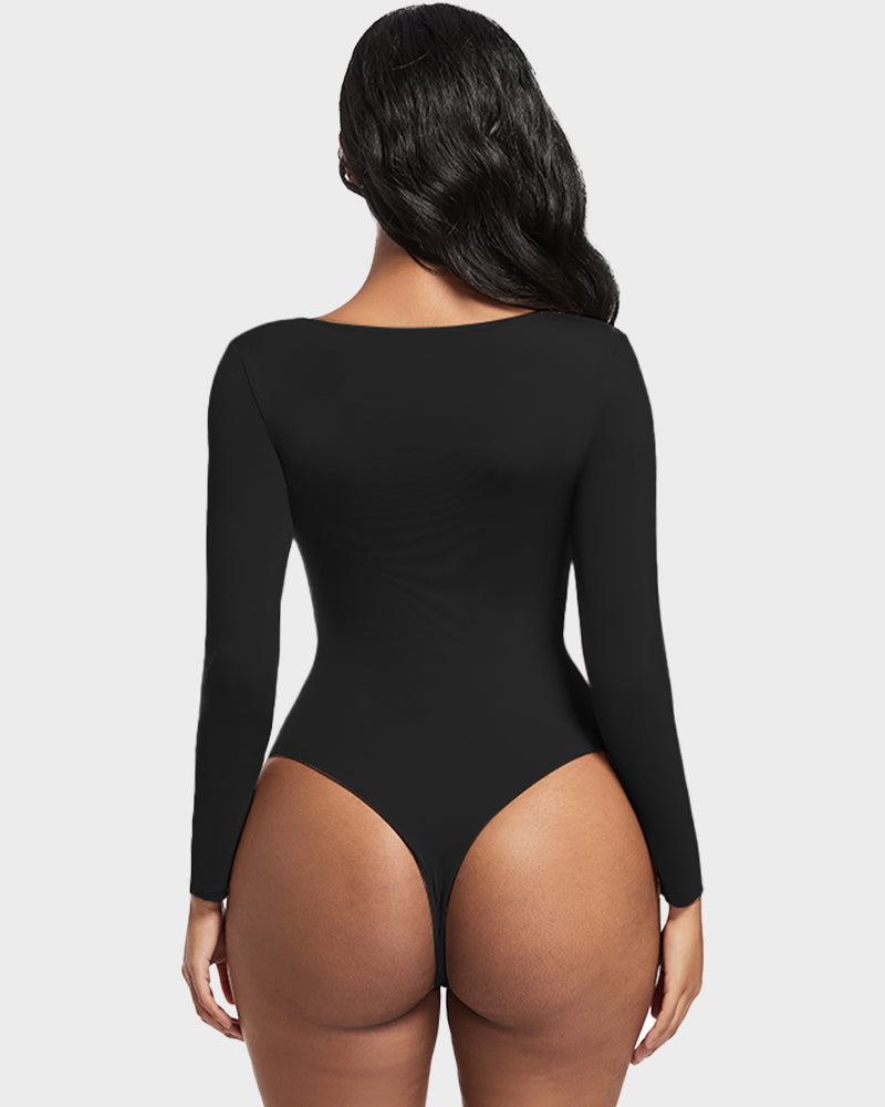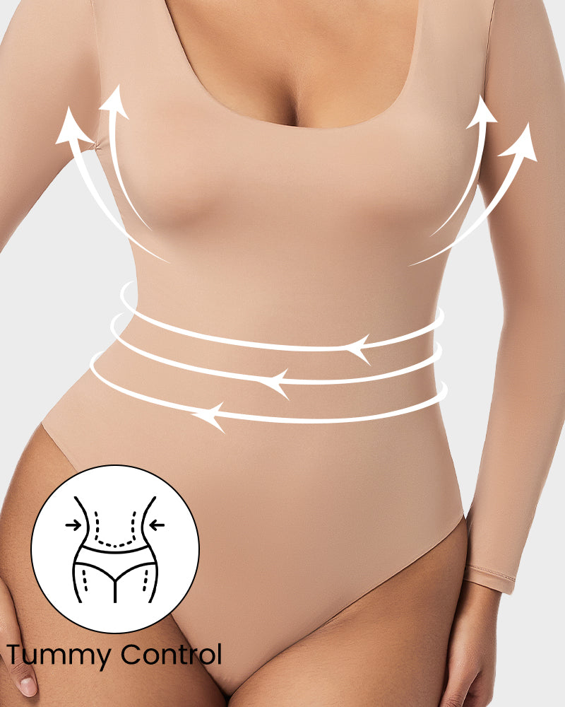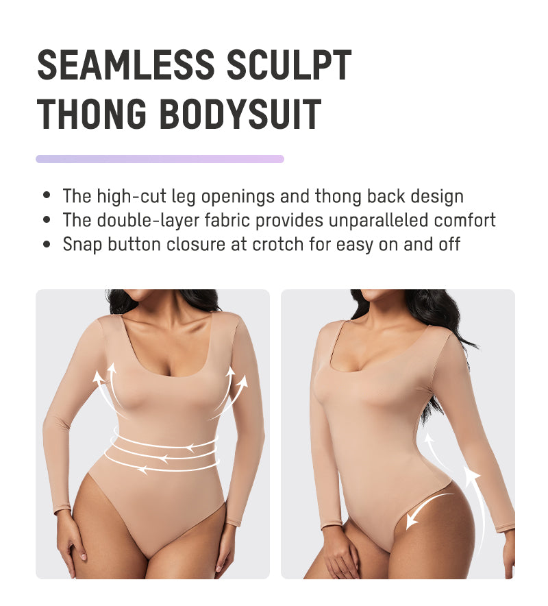 Seamless Sculpt Long Sleeve Scoop Neck Thong Bodysuit