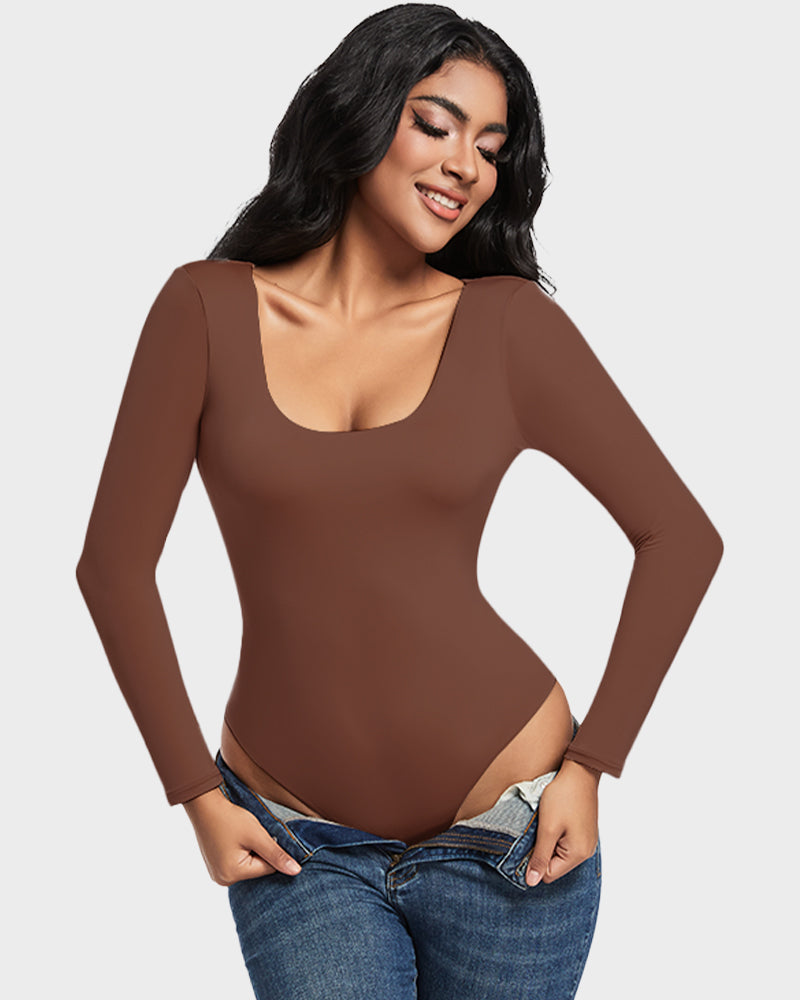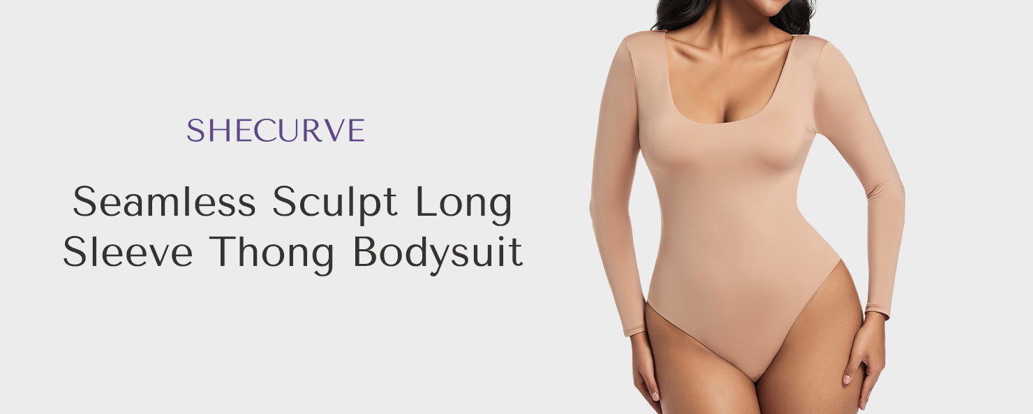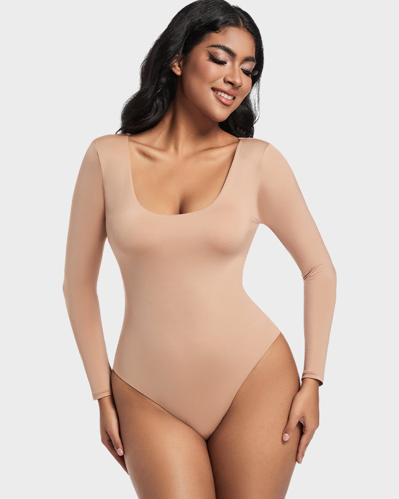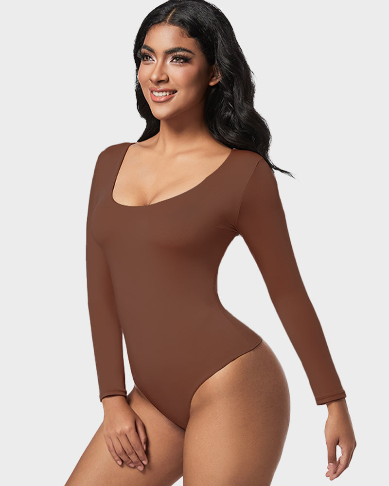 Seamless Sculpt Long Sleeve Scoop Neck Thong Bodysuit