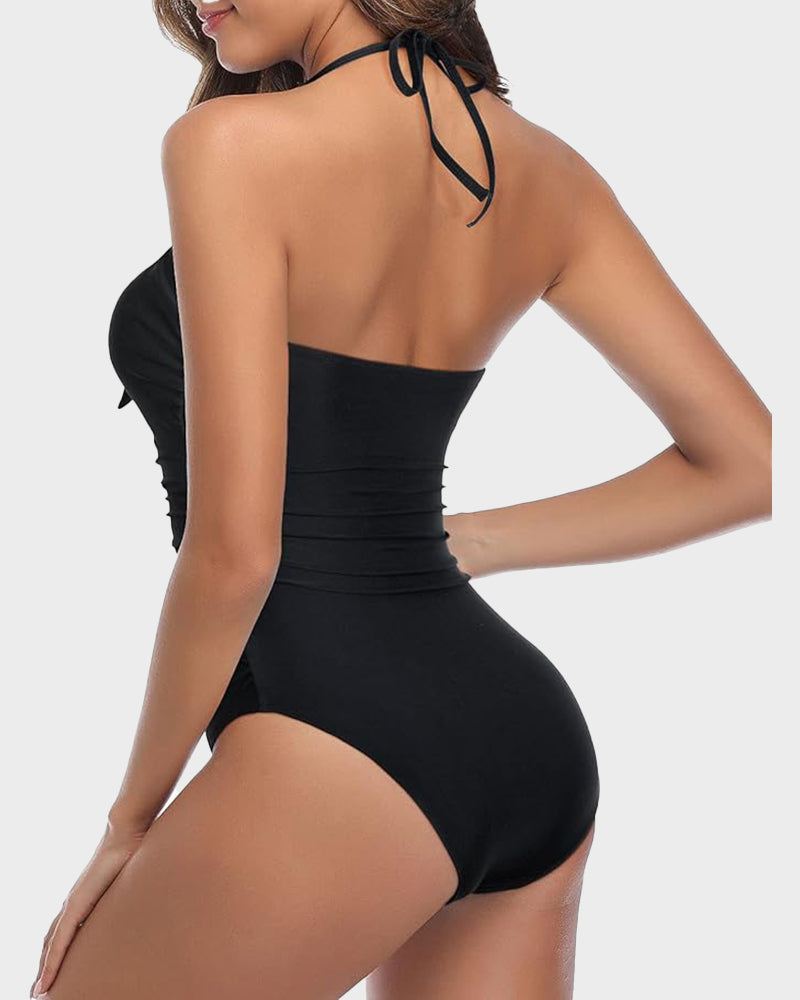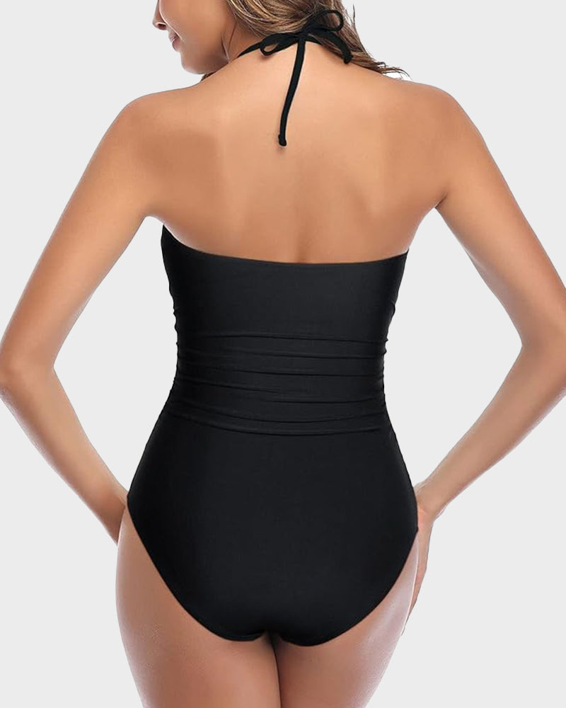 Introducing the Halter Neck Ruched Tummy Control Cutout Swimsuit, designed to offer both style and confidence for your beach or pool days. This swimsuit features flattering ruched details and a chic cutout design, making it the perfect choice for those who want to look great while enjoying the sun.