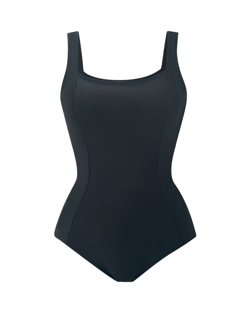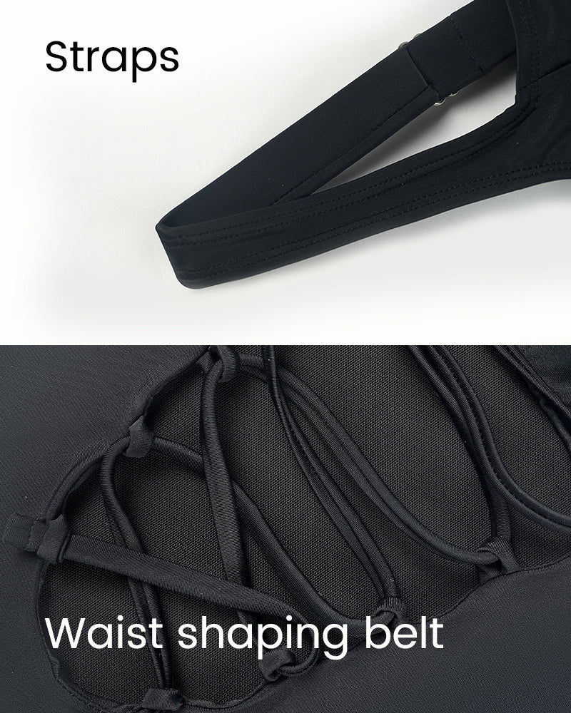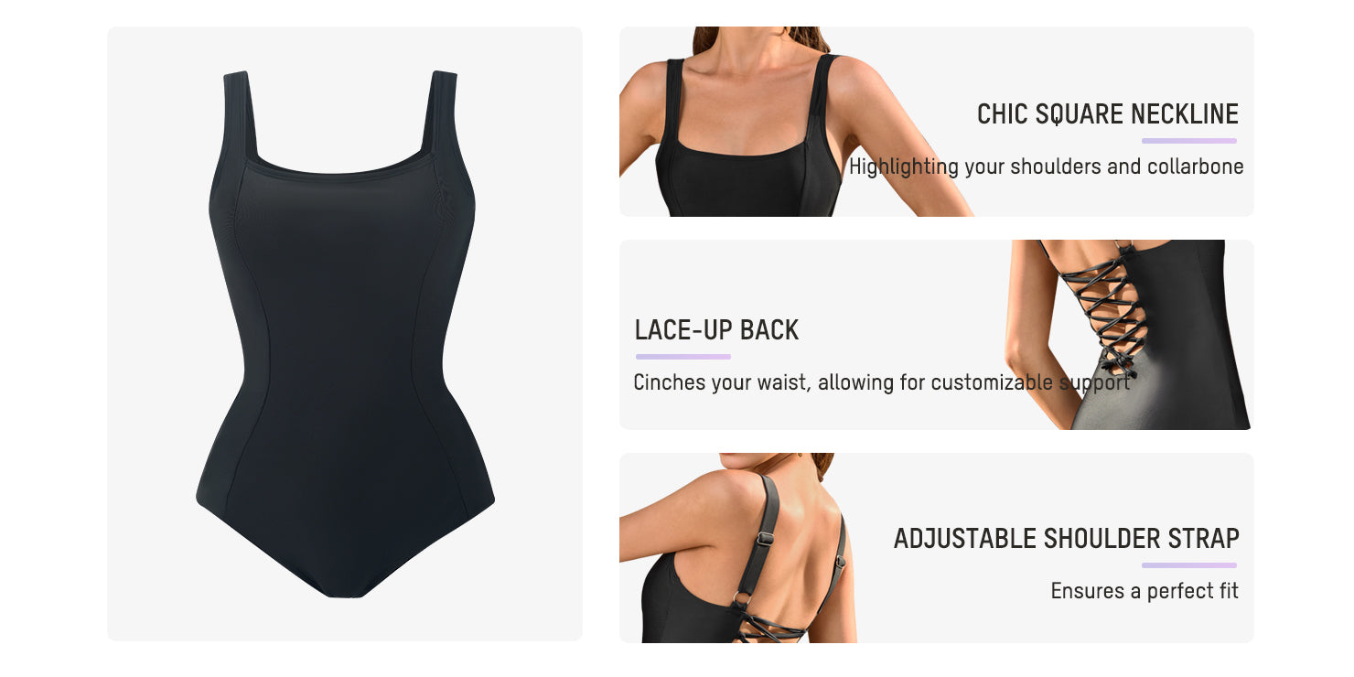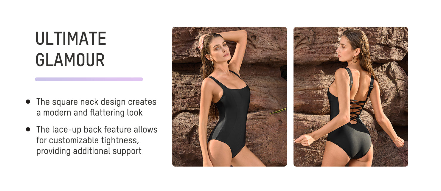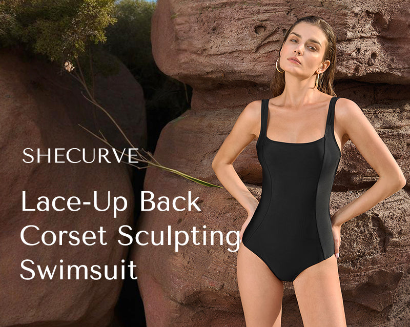 Square Neck Lace-Up Back Sculpting Swimsuit