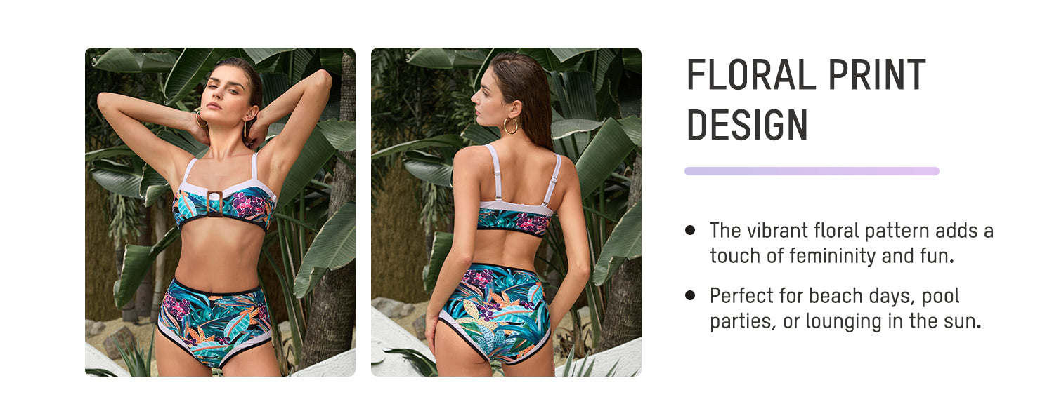 Stylish High Waist Floral Bikini Set