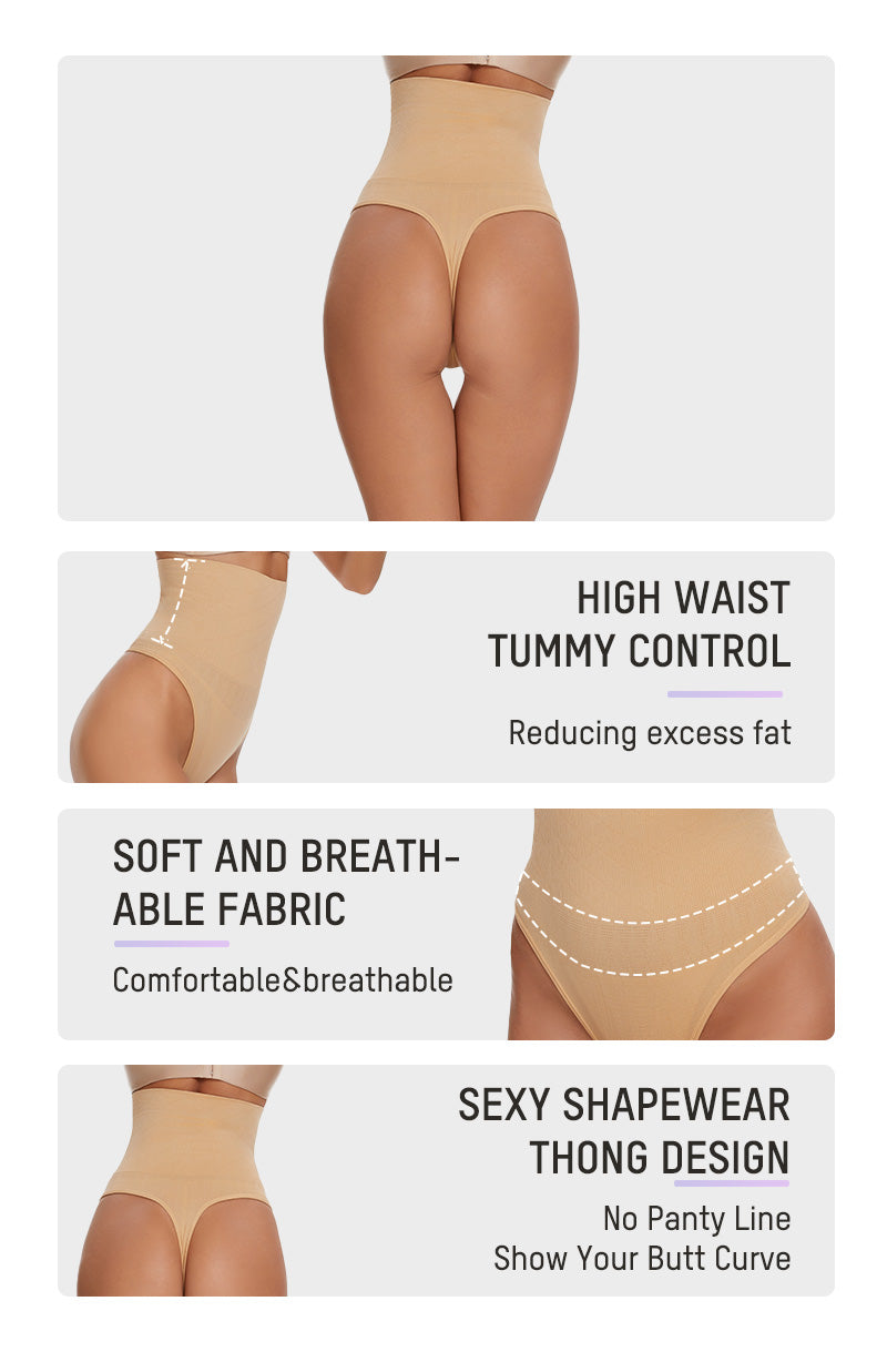 Seamless High-Waisted Shaper Thong Panty(2pcs )